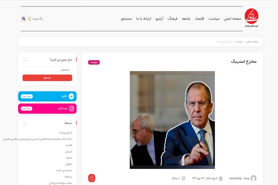 مقالة مترجمة عن الفارسية بجريدة “سازندگی” الإصلاحية (بالعربية: البناء) بعنوان “مخترع اسنپ بک” (بالعربية: مخترع آلية العودة السريعة للعقوبات) للكاتب أبو الفضل خدايي، بتاريخ: ۲۴ مهر ۱۴۰۴هـ. ش. الموافق الخميس 16 أكتوبر 2025م.